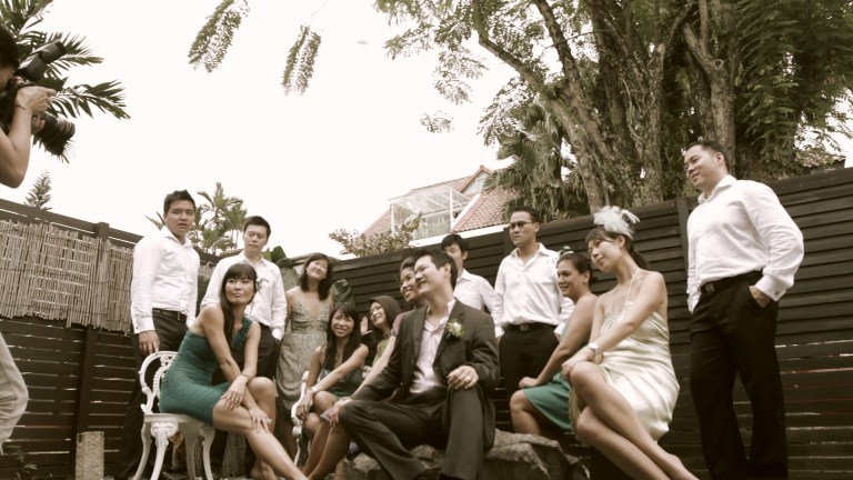 The day was all beautiful and we loved the locations. Irvin turned up in bright orange overalls with the brothers and they were totally sporting (even if they had to do some suggestive stuff!). Although the timing was tight, we managed some pretty nice shots. The team worked very hard for this video due to the big house and the response was great! (Pity the AV ppl cut off our logo at the end of the video before it was played $#%!!@. It was a real pleasure to have the bride call me personally to thank us for having helped them capture their memories for life =)